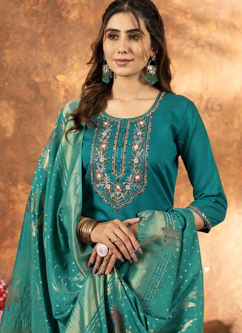 | Product Name | Rama Green Marina Silk Thread Embroidered Salwar Suit | |