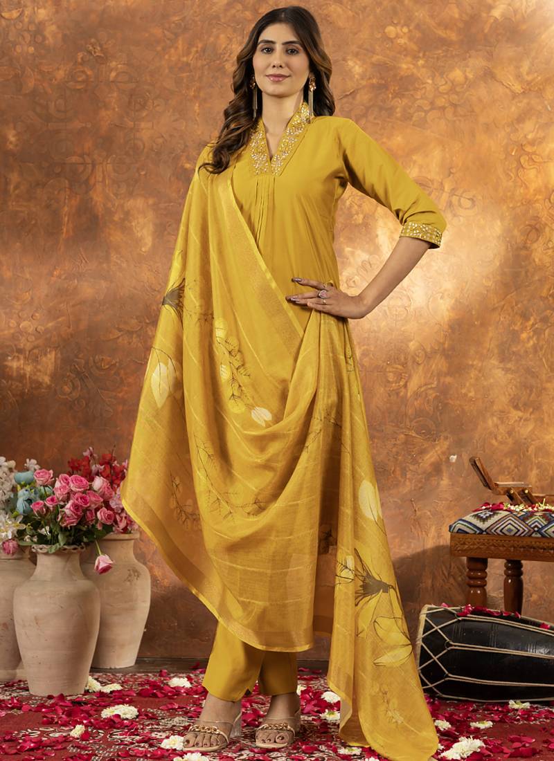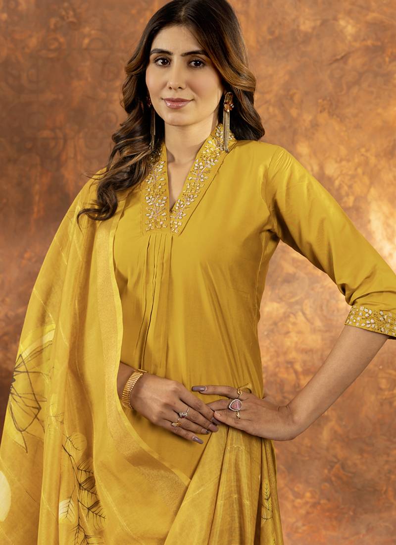 | Product Name | Yellow Roman Silk Thread Embroidered Sequence Salwar Suit | |