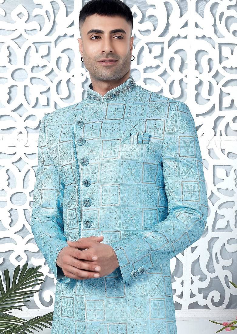 | Product Name | Blue Computer Thread Work On Art Silk Sherwani For Men | |