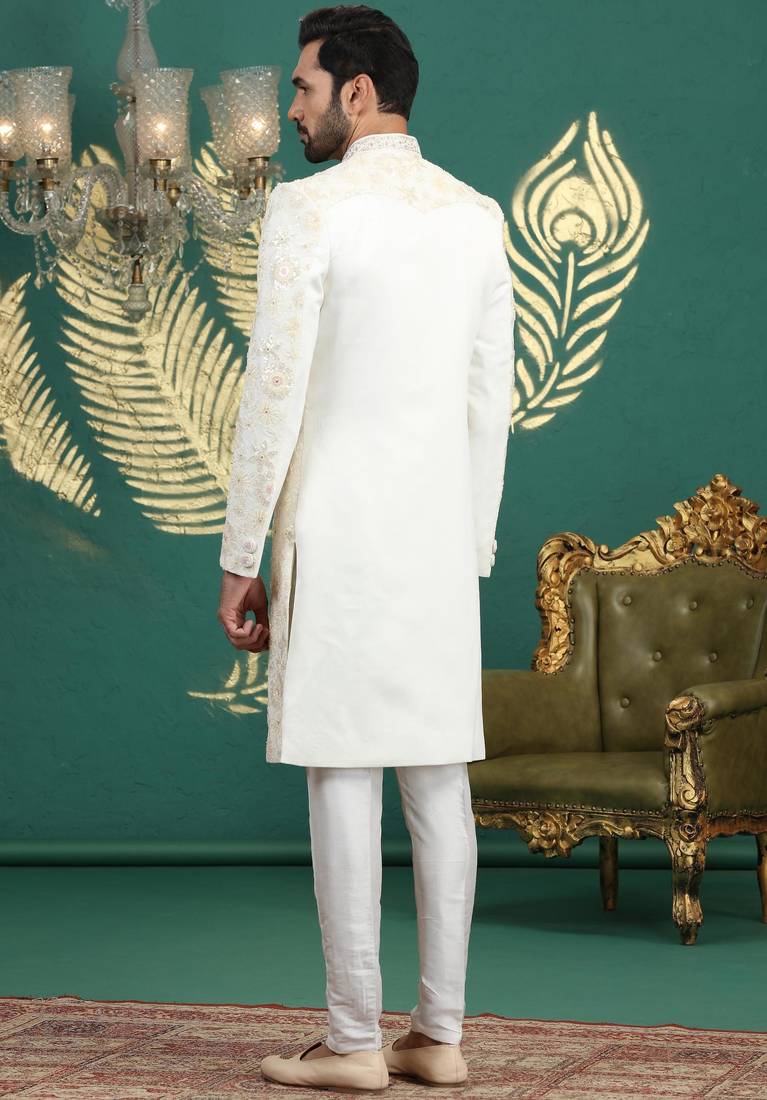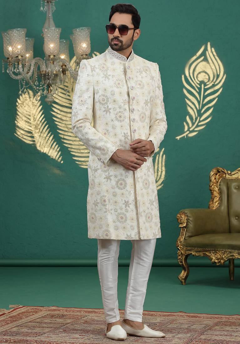 | Product Name | Cream Computer Thread Work On Art Silk Sherwani For Men | |