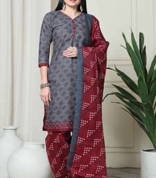 Grey cotton blend printed ready to wear patiala salwar suit stitched