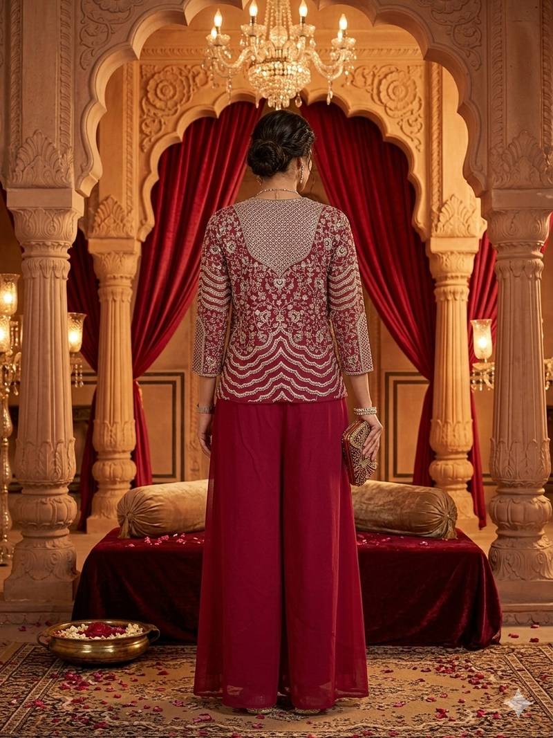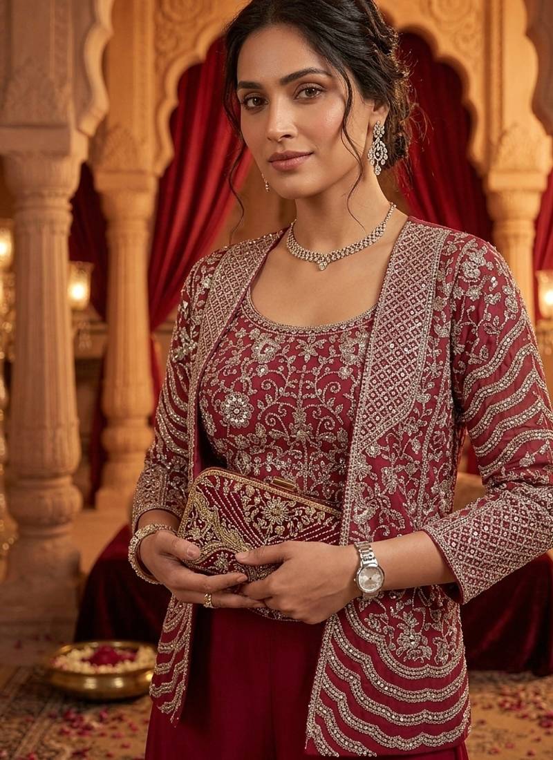 | Product Name | Women's Elegant Purple Georgette Silk Embellished Jacket Palazzo Set | |