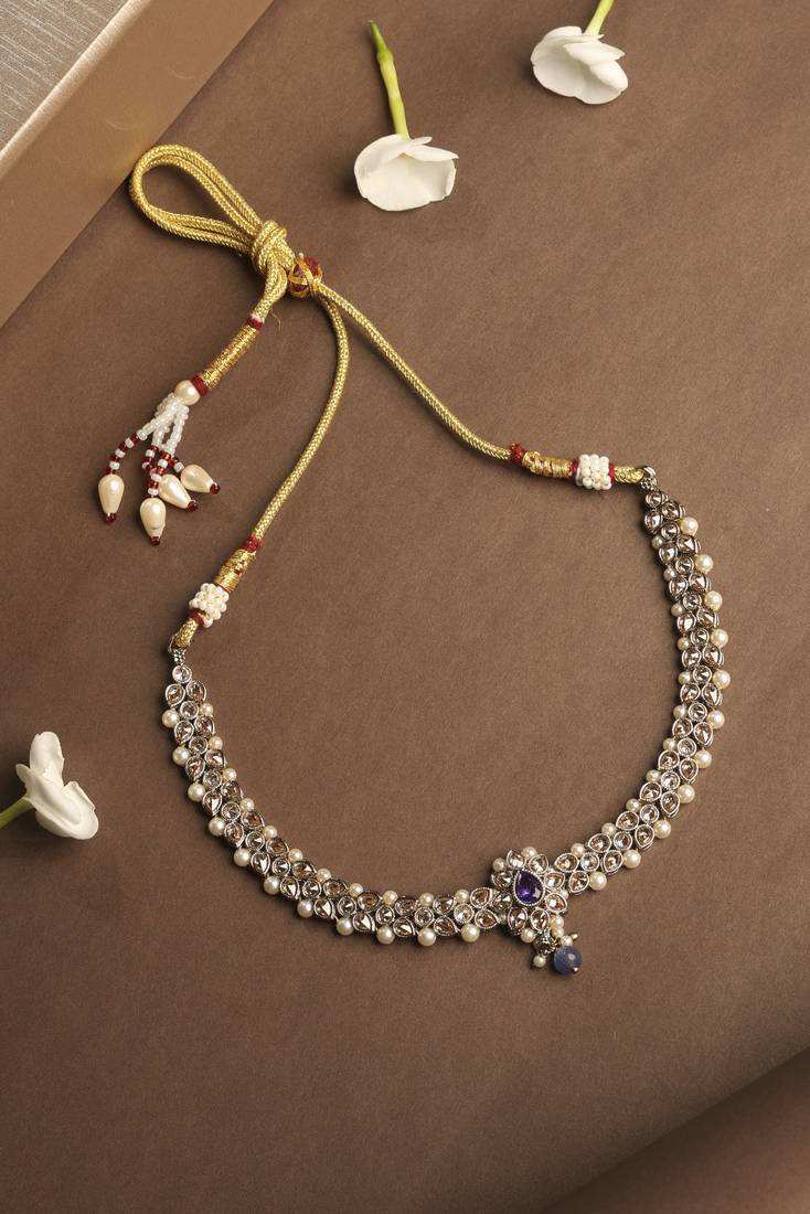 | Product Name | Flower And Oval Shape Blue Kundan Stone Gold Plated Choker Necklace Set With Maang Tikka For Women | |