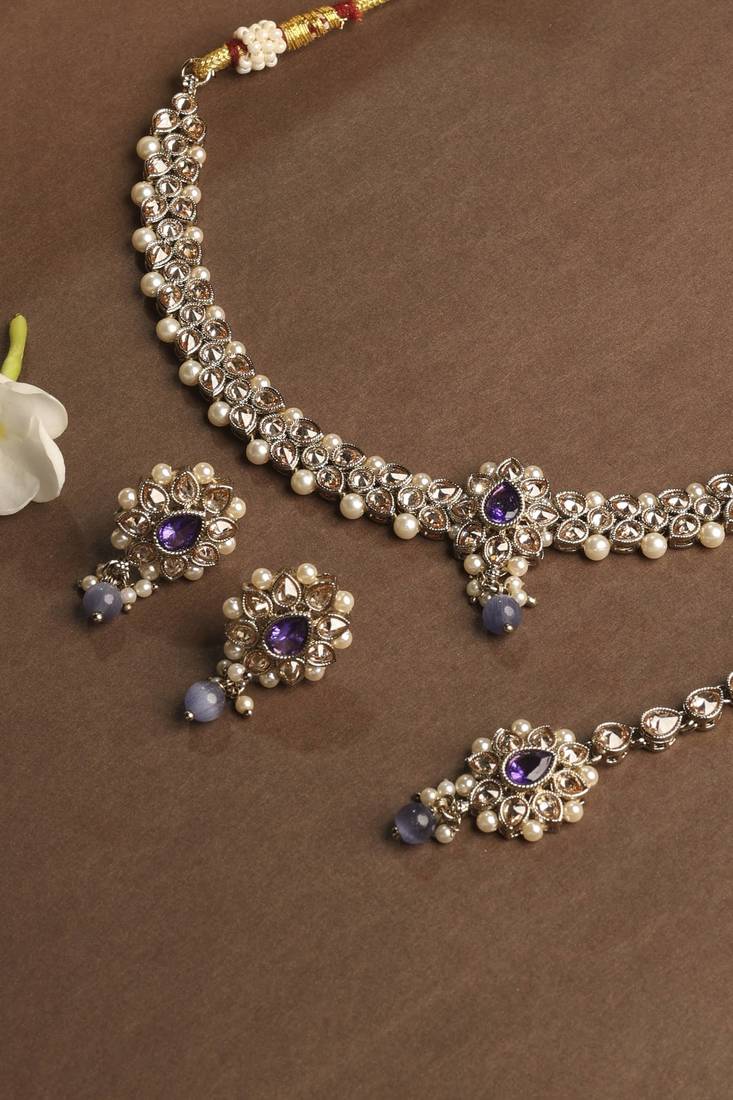 | Product Description | This Saloni Fashion Jewellery Glorious Flower And Oval Shape Blue Kundan Stone Antique Gold Plated Choker Necklace Set With Maang Tikka For Women And Girls Is Made Of Alloy Will Give You Astonishing Charm And Super Comfort.