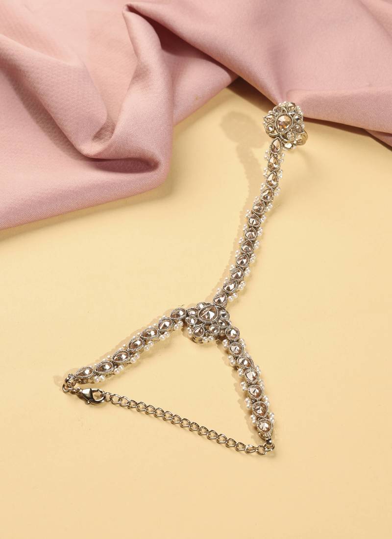 | Product Name | Flower And Oval Shape Pearl Brown Kundan Gold Plated Set Of 2 Brass Hathpaan(Hathphool) For Women | |
