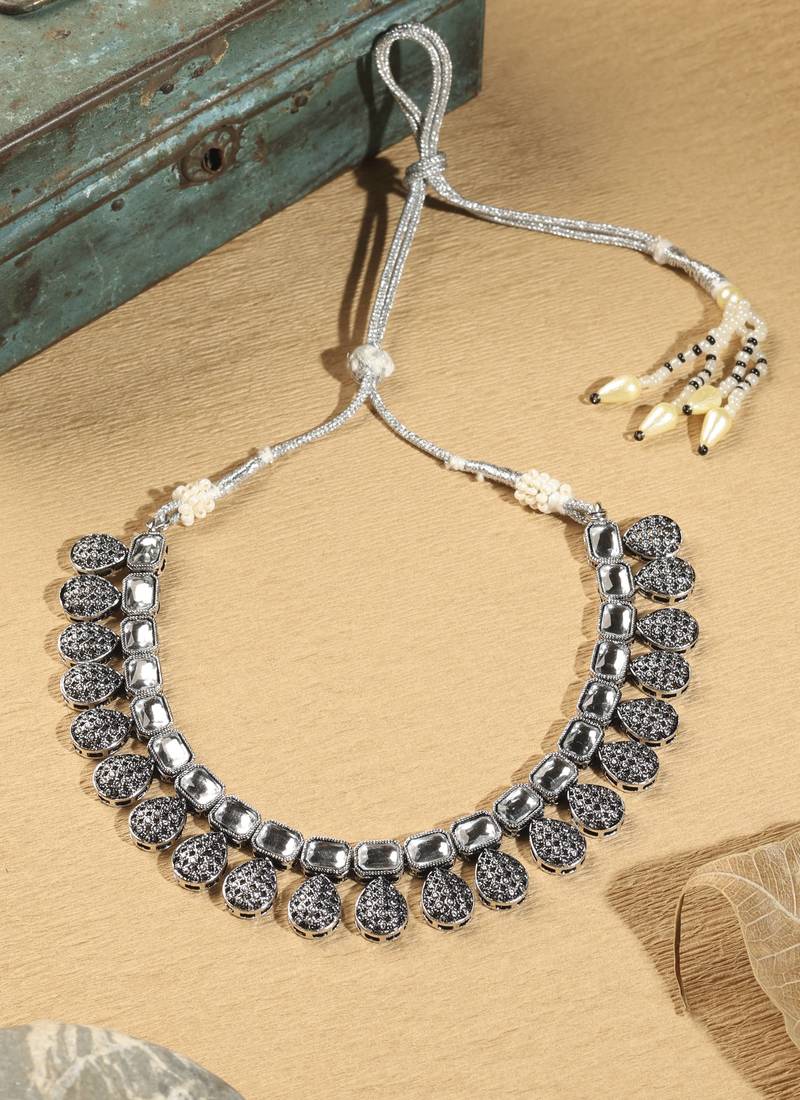 | Product Name | Oval Shape Silver Kundan Stone Gold Plated Brass Choker Necklace Set With Maang Tikka For Women | |