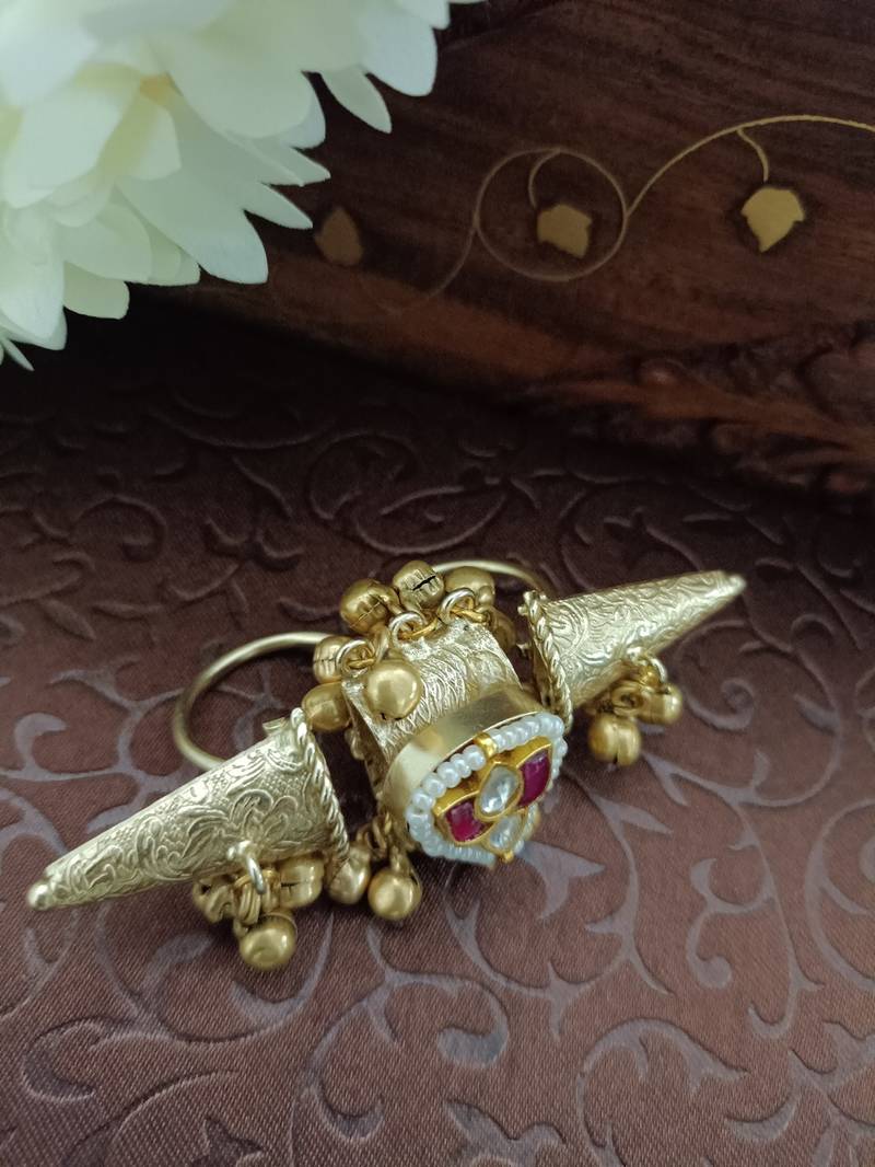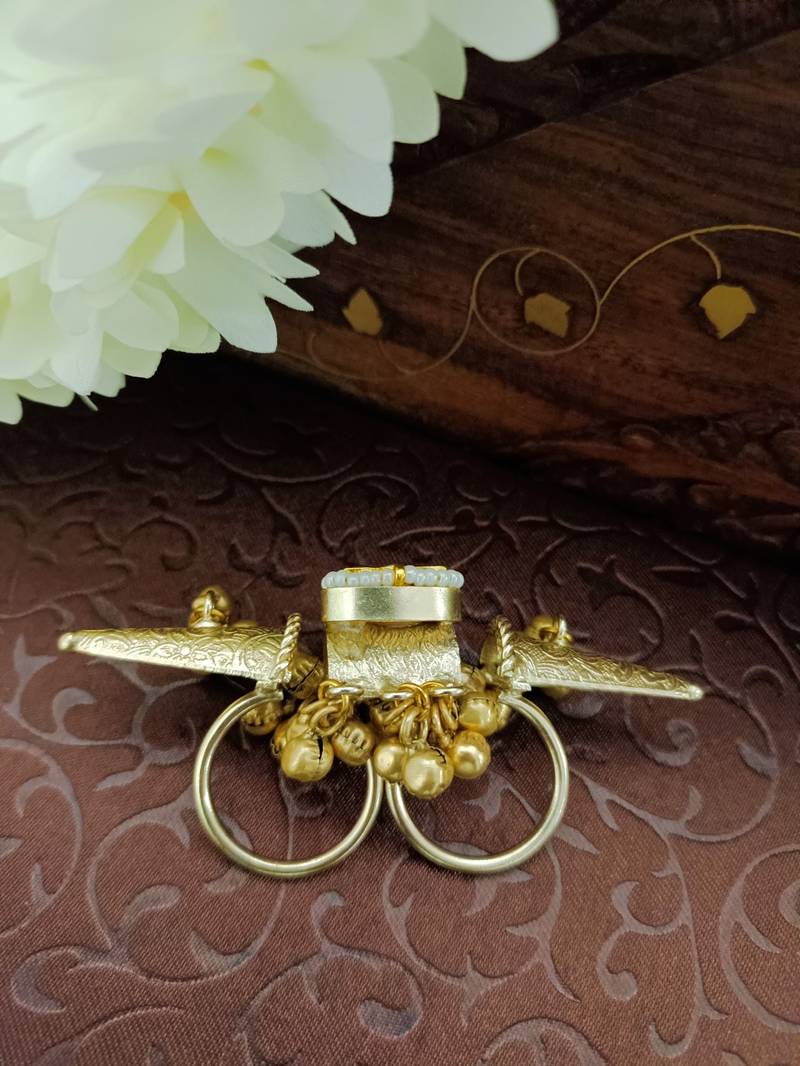 | Product Name | Brass Plated Pachi Kundan Studded Multi Finger Ghungaroo Ring | |