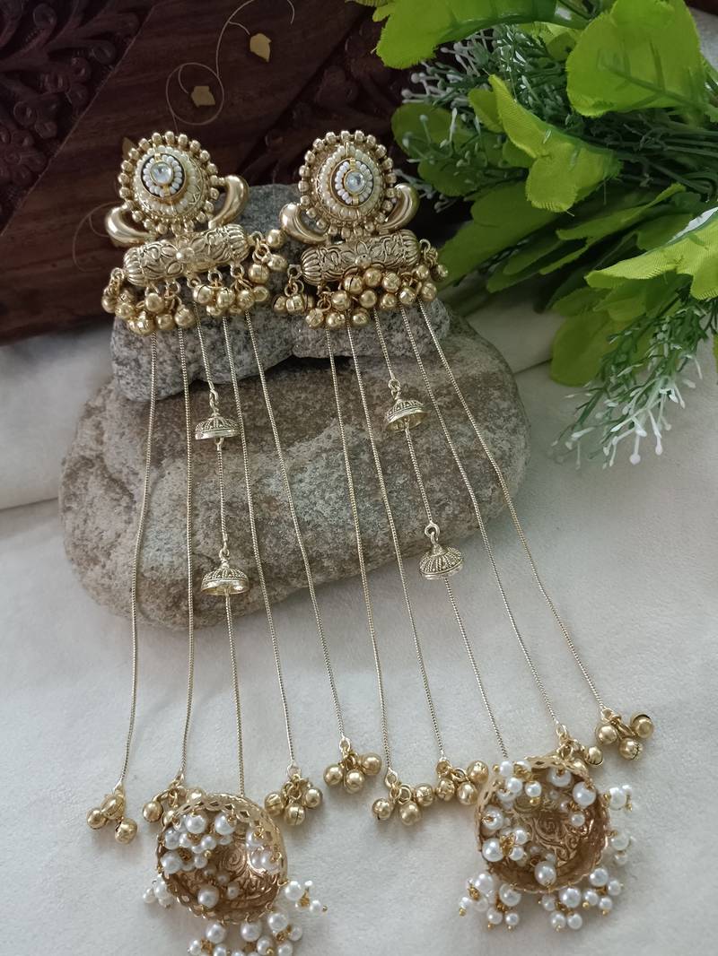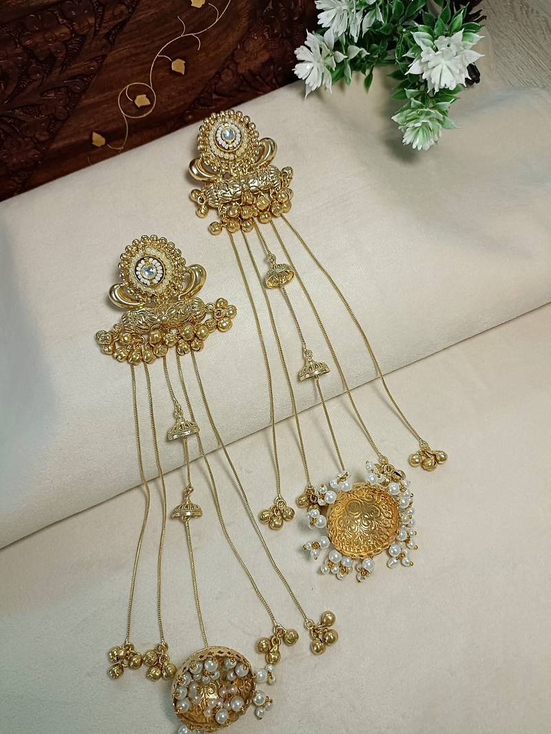 | Product Name | Gold Plated Kashmiri Long Jhumka Earrings With Pearl & Ghungroo Chains | |