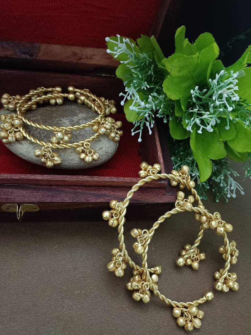 | Product Name | Set Of 4 Gold Plated Twisted Kada Bracelet With Clustered Ghungroo Charms | |