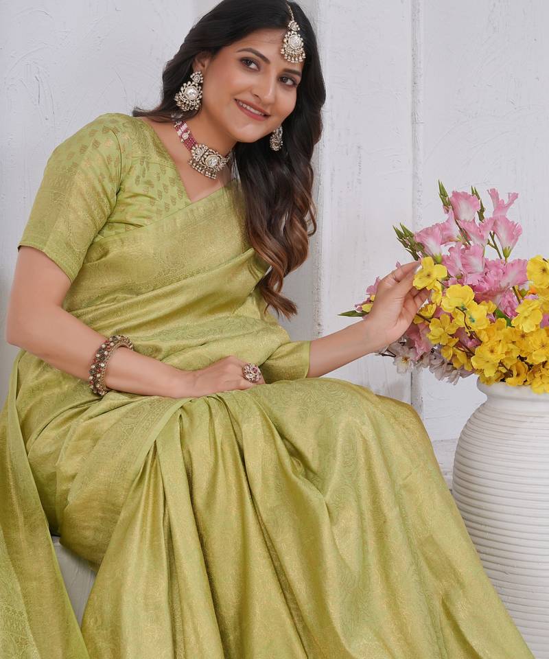 Product Name Light Green Pure Kanjeevaram Silk Rose Floral Woven Zari Design Saree With Blouse