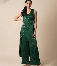 Green satin embroidered kurta set