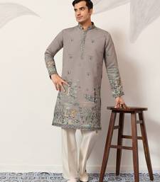 | Product Name | Grey Viscose Silk Thread & Sequins Embroidered Work Wedding Festival Marriage Party Wear Straight Mens Kurta | |