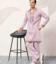 Lavender viscose silk thread & sequins embroidered work festival marriage party wear straight mens kurta with pant