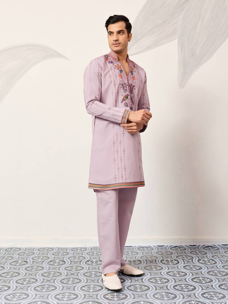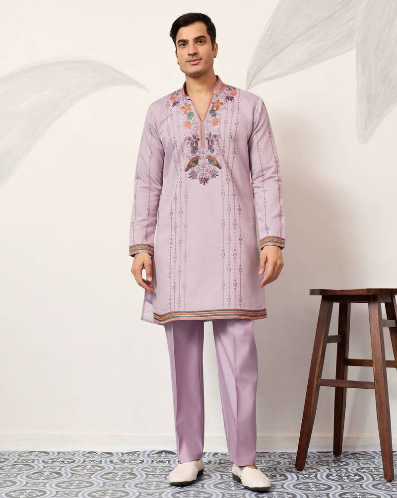 | Product Name | Lavender Viscose Silk Thread & Sequins Embroidered Work Festival Marriage Party Wear Straight Mens Kurta With Pant | |