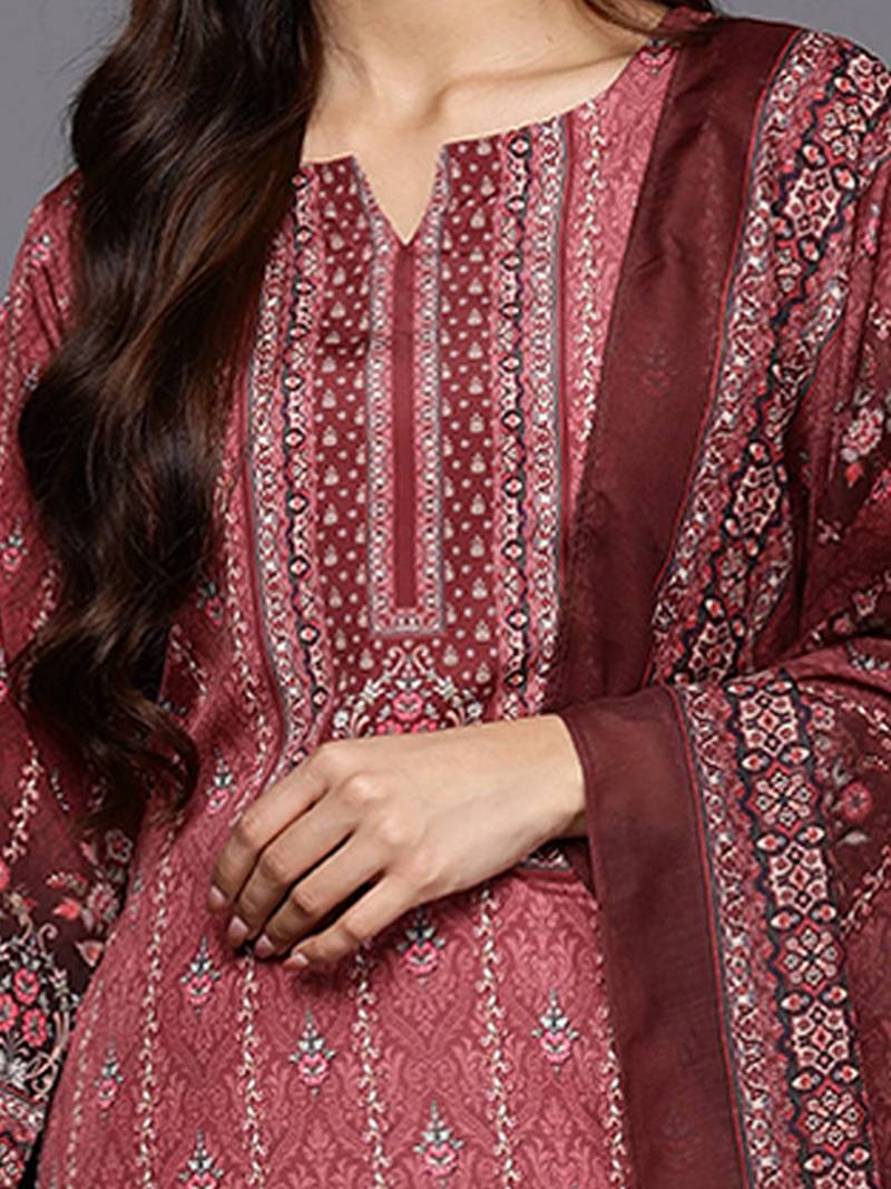 | Product Description | Maroon, Cream And Black Printed Kurta With Trousers And Dupatta Kurta Design: |