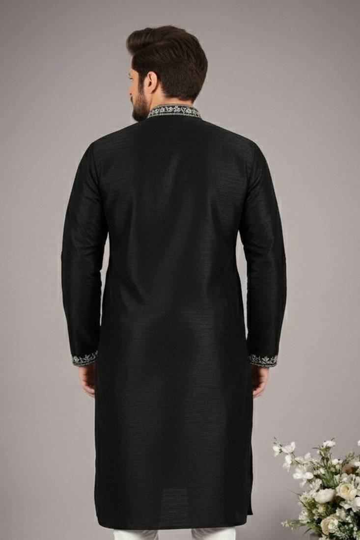 | Product Name | Black Embroidered Dupion Silk Kurta | |