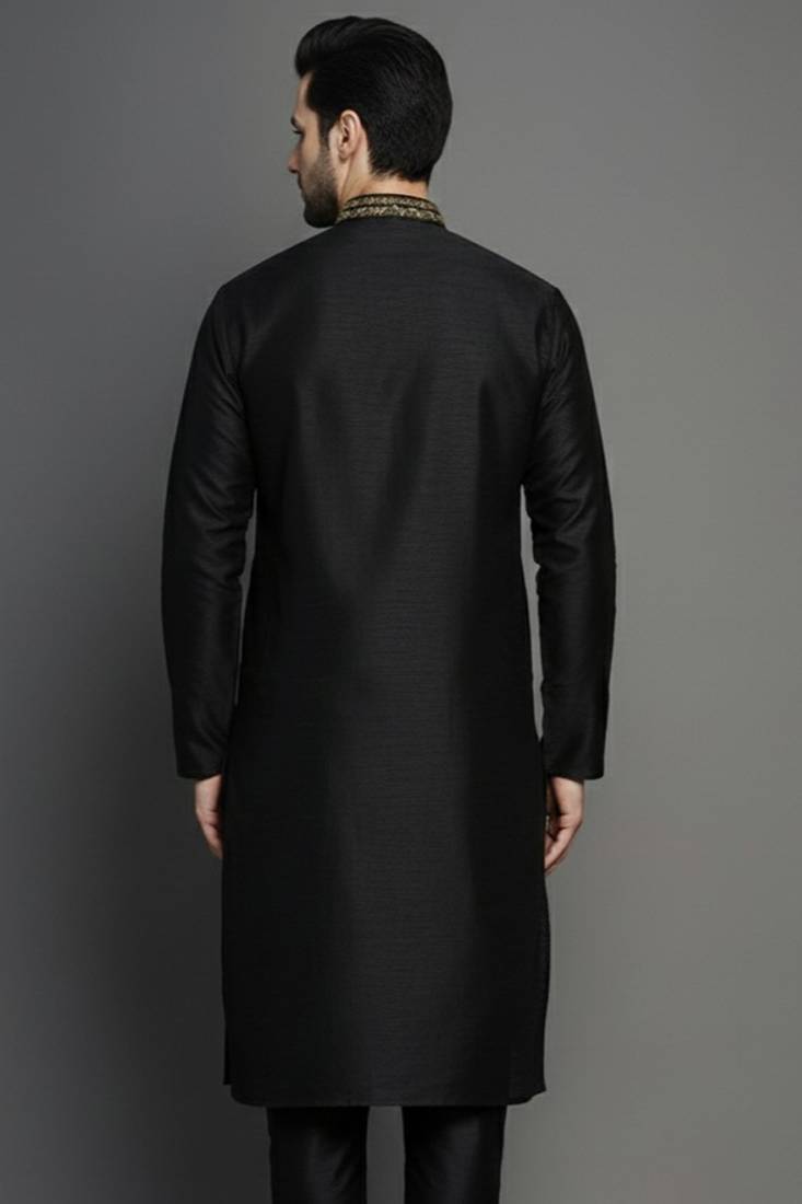| Product Name | Black Embroidered Dupion Silk Kurta | |