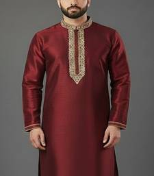 Maroon embroidered dupion silk kurta