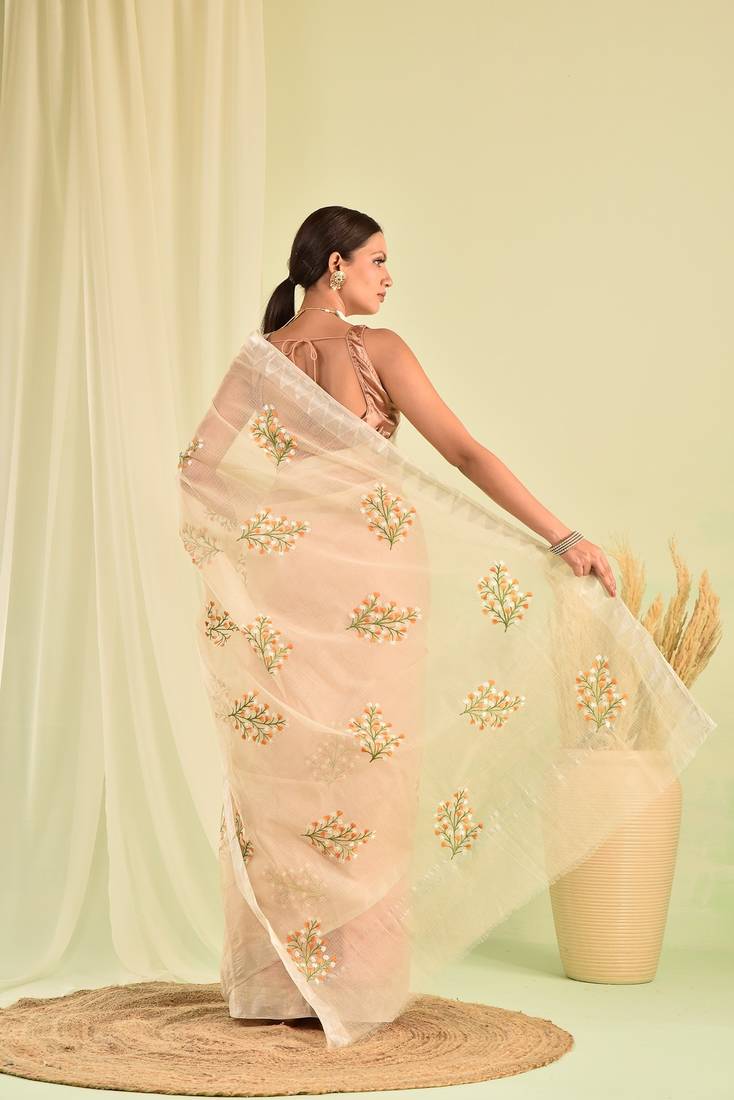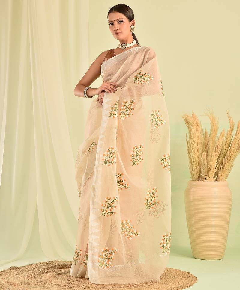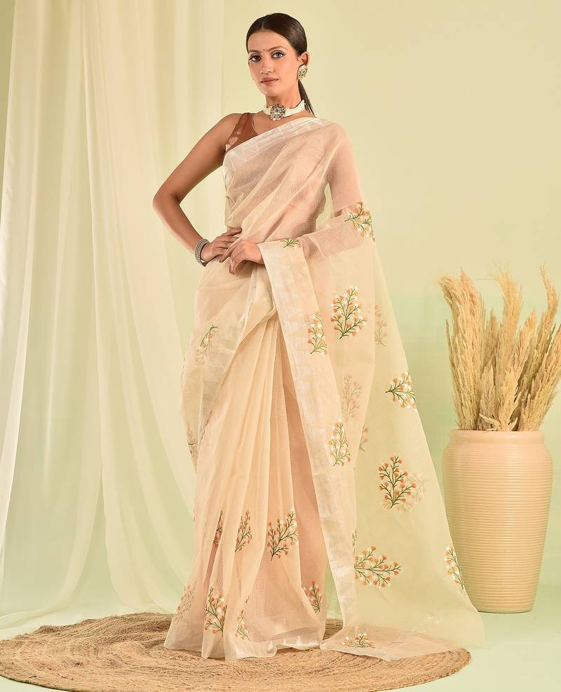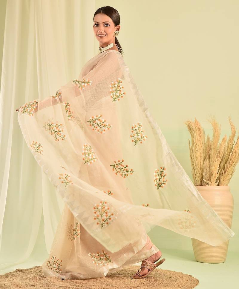 | Product Name | Beige Hand Embroidered Floral Kota Doria Saree | |