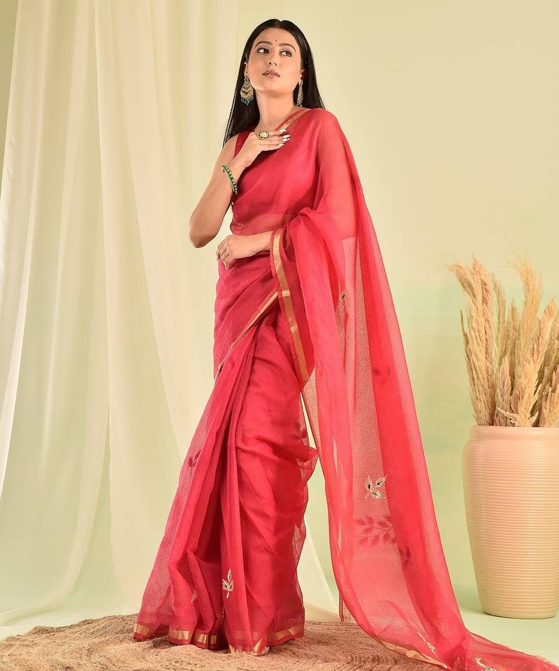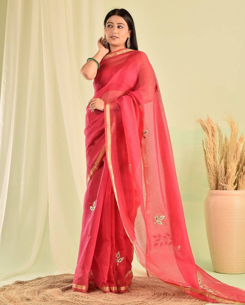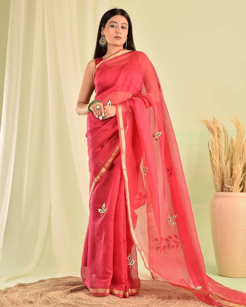 | Product Description | Elevate Your Summer Wedding Look With This Stunning Red Kota Doria Saree, Hand Crafted To Perfection. It Comes With An Unstitched Blouse Piece. Adorned With Delicate Gota Work, It Exudes Traditional Charm With A Contemporary Flair.Lightweight And Breezy, It’s Effortlessly Elegant And Easy To Carry All Day Long. |
