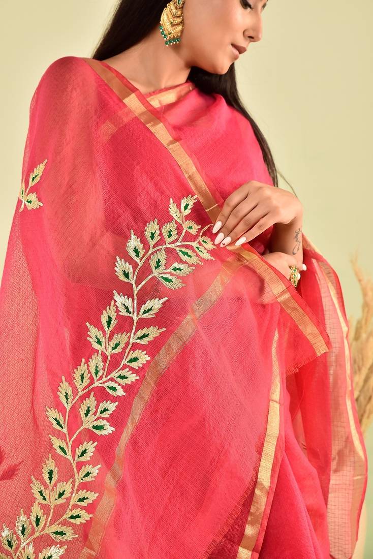 | Product Name | Pink Kota Doria Gota Patti Saree | |