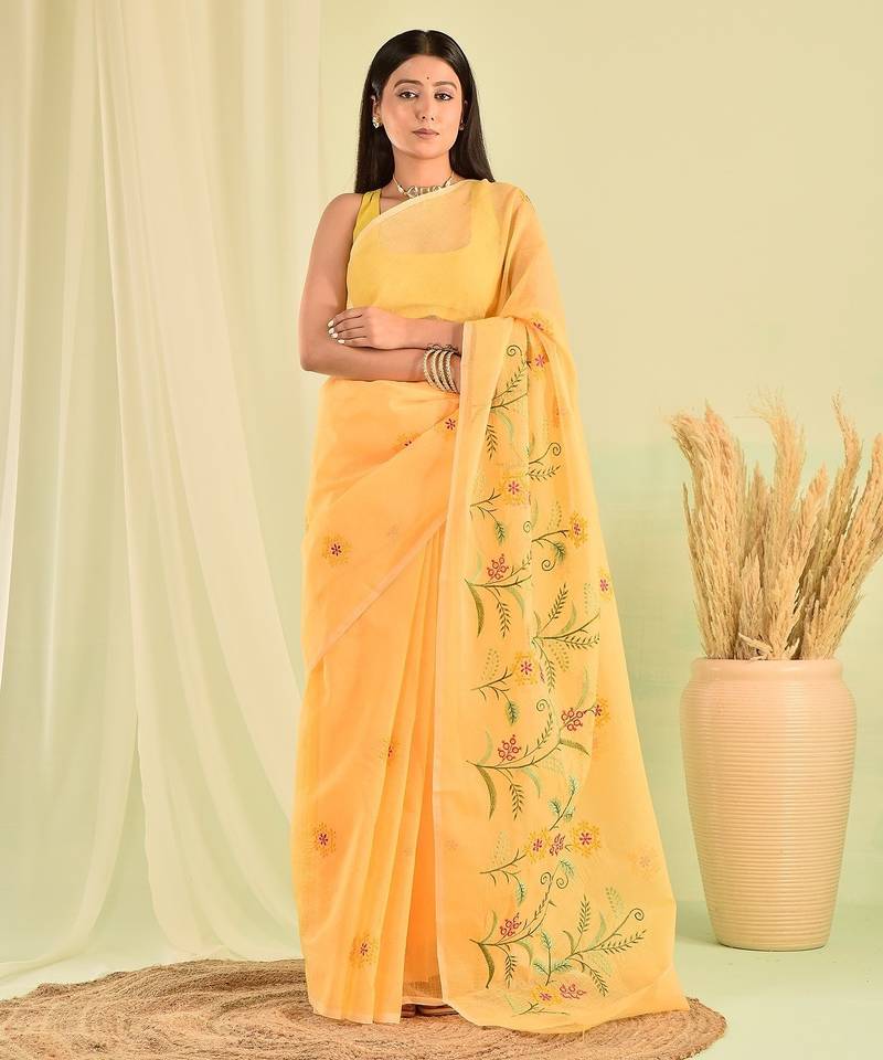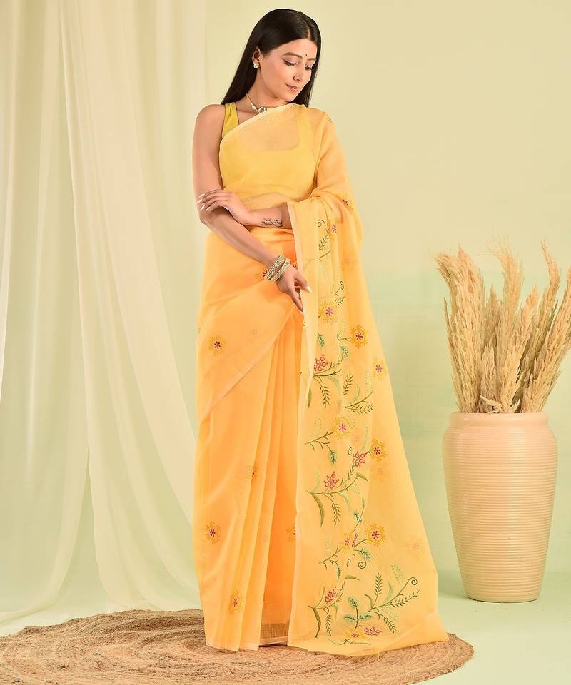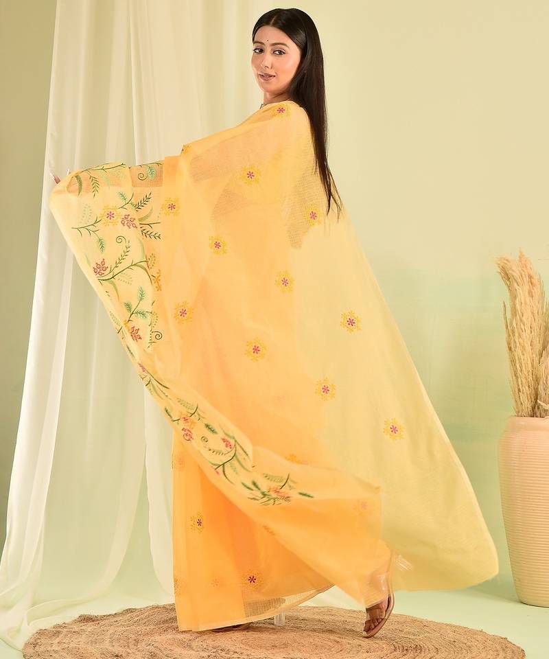| Product Name | Yellow Kota Doria Saree With Hand Embroidery | |