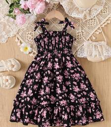 | Product Name | Black Floral Print Rayon Smocked Fit & Flare Midi Dress For Girls | |
