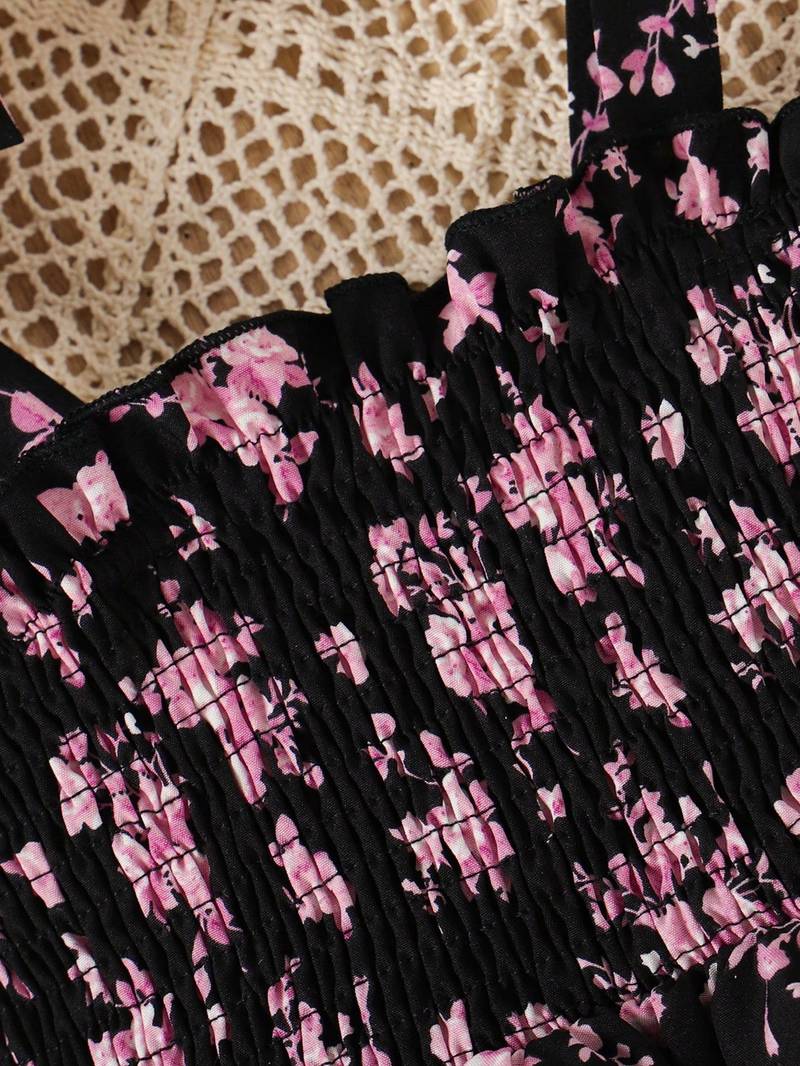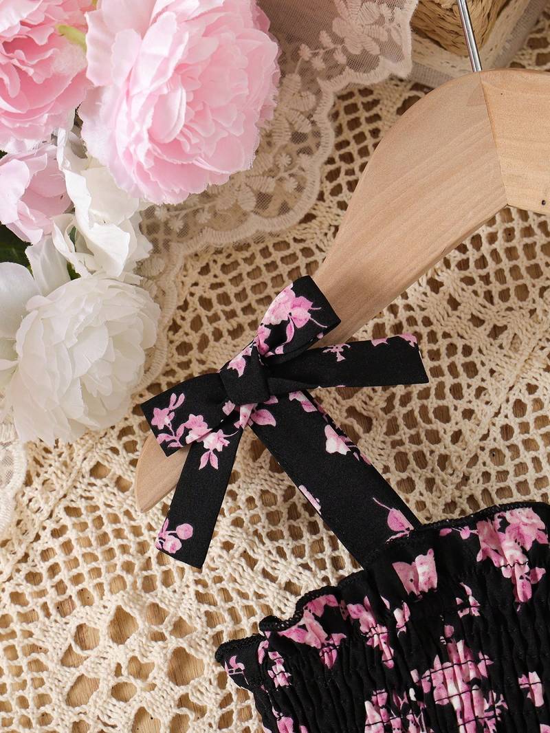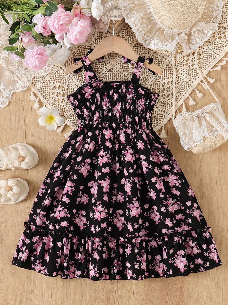 | Product Description | Crafted From Soft And Lightweight Fabric For Breathable, All Day Comfort. Elegant Black Base With Delicate Pink Floral Print For A Stylish And Charming Look. Smocked Bodice Provides A Snug Yet Flexible Fit, Ensuring Ease Of Movement. Adjustable Tie Up Shoulder Straps Add A Cute Detail And Customizable Fit. Flowy Flared Design With Ruffle Hem, Perfect For Parties, Outings, And Special Occasions. |