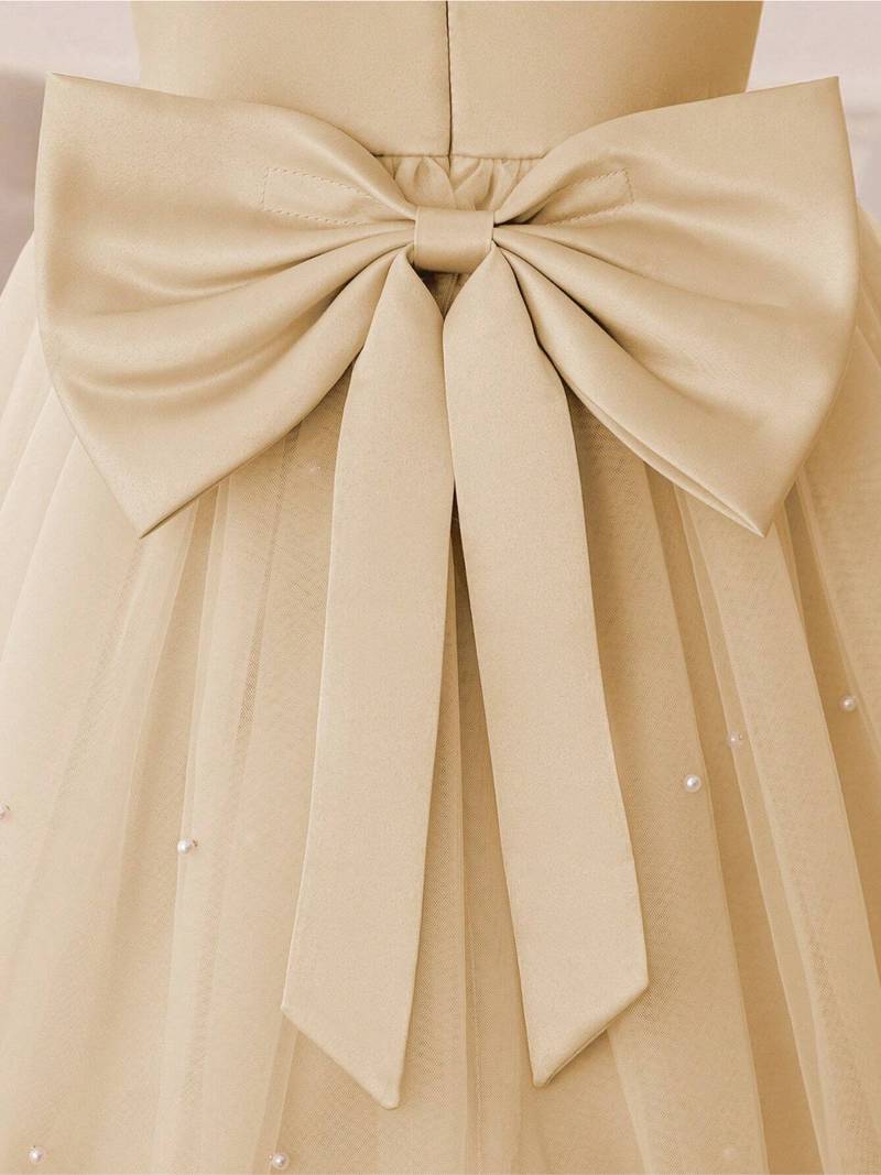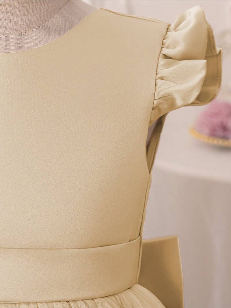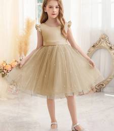 Product Name Cream Solid Net Fit & Flare Party Dress For Girls