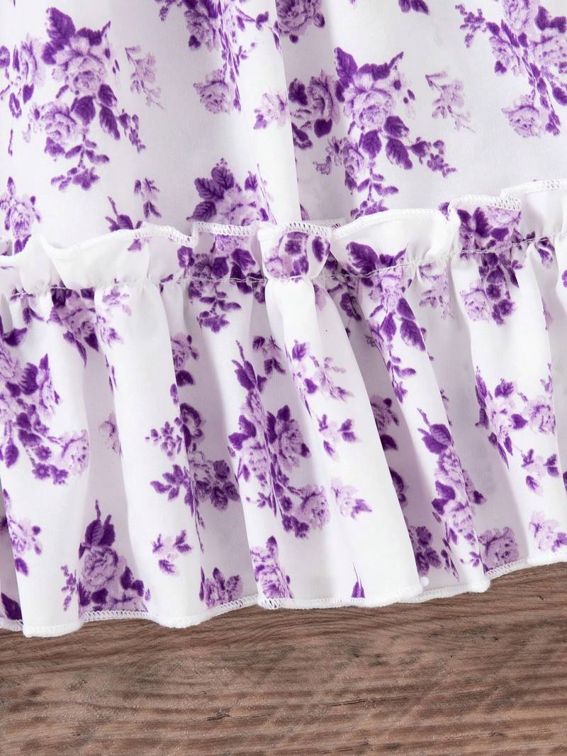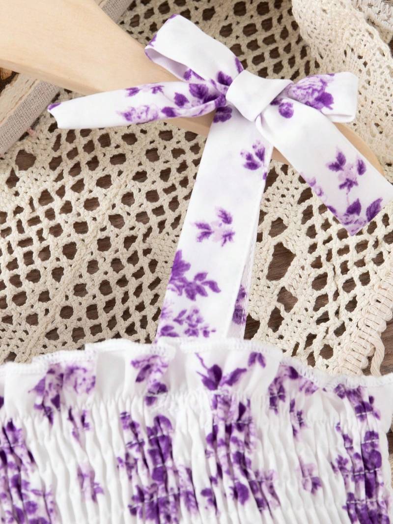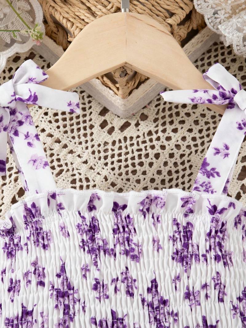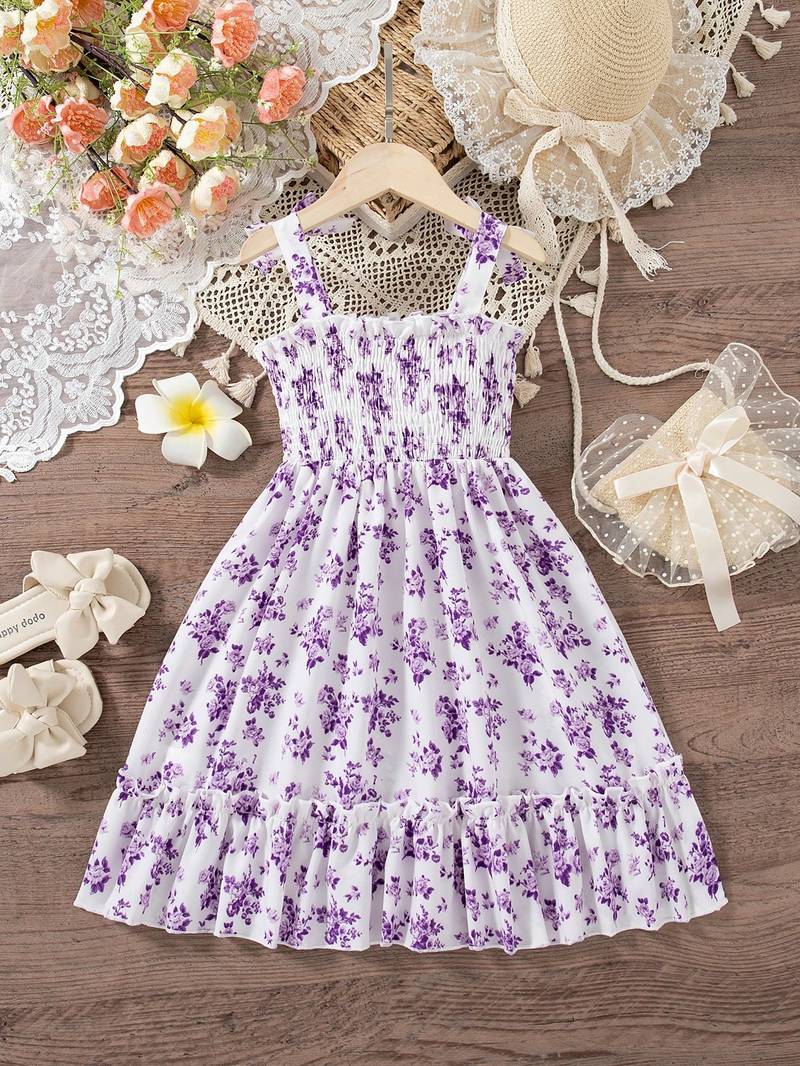 | Product Description | Crafted From Soft And Lightweight Fabric For Breathable, All Day Comfort. Elegant Purple Base With Delicate Pink Floral Print For A Stylish And Charming Look. Smocked Bodice Provides A Snug Yet Flexible Fit, Ensuring Ease Of Movement. Adjustable Tie Up Shoulder Straps Add A Cute Detail And Customizable Fit. Flowy Flared Design With Ruffle Hem, Perfect For Parties, Outings, And Special Occasions. |