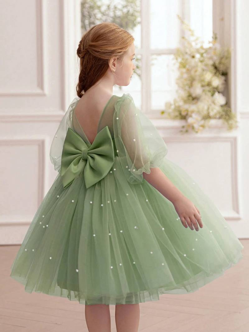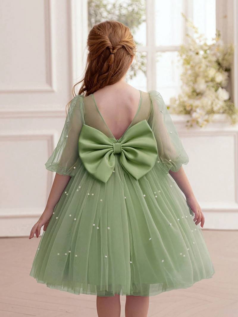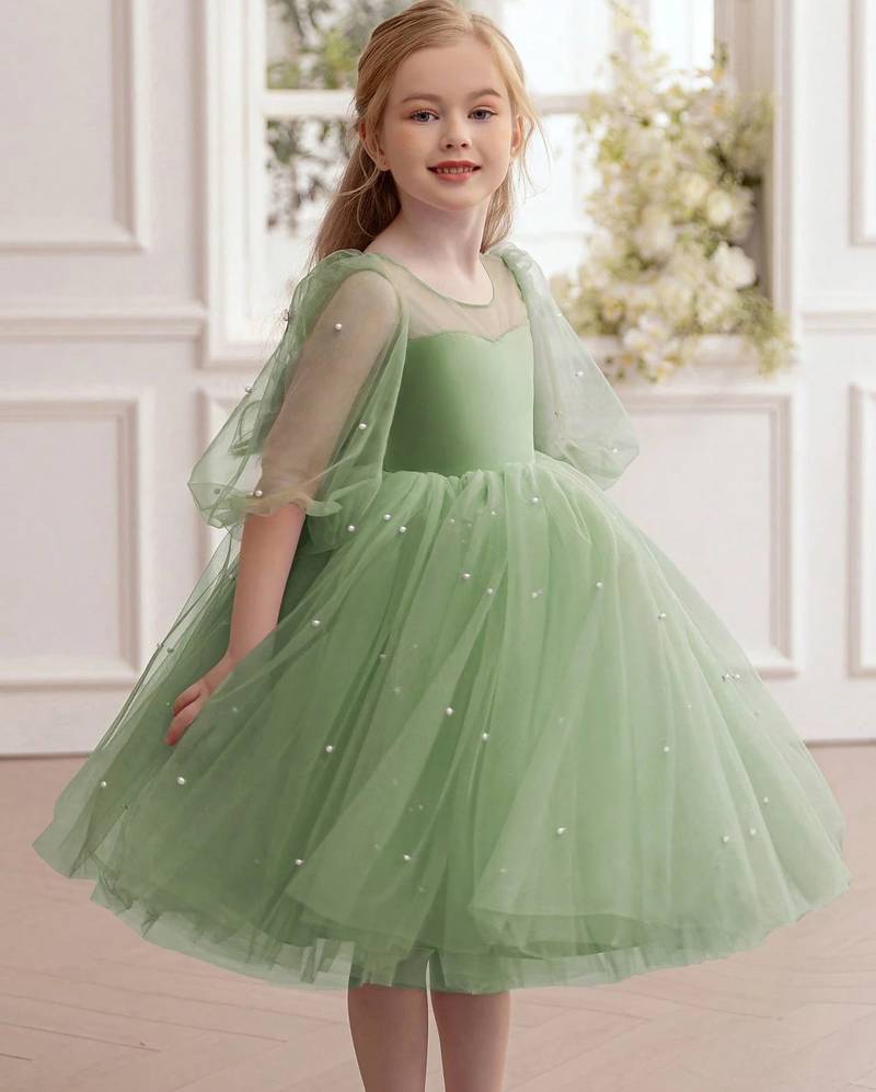 Product Name Green Pearl Embellished Net Fit & Flare Party Dress For Girls