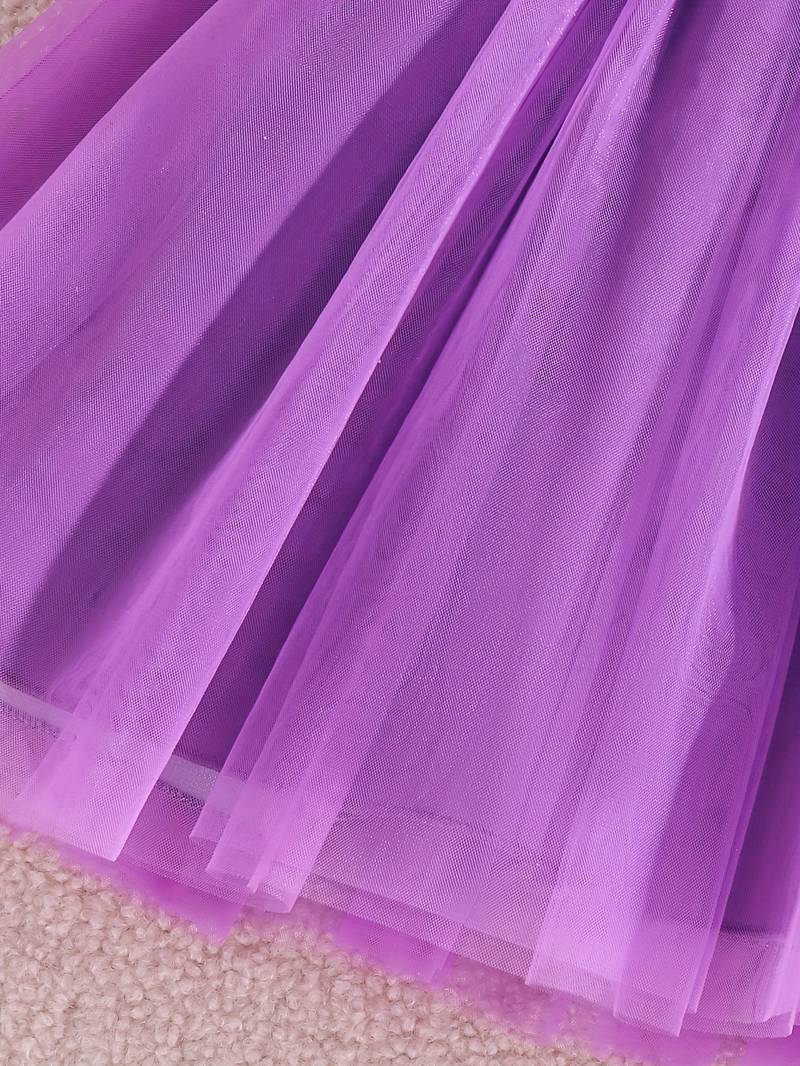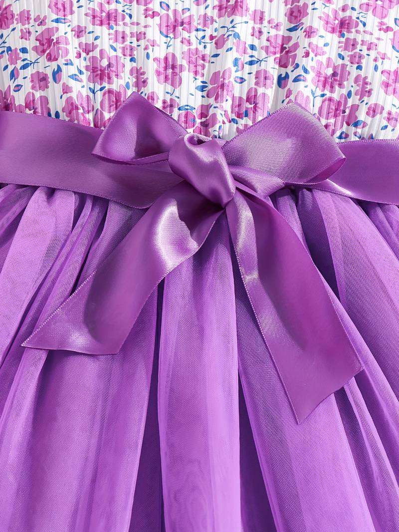 Product Name Purple Floral Printed Net Fit & Flare Party Dress For Girls