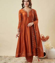 Women's gorgeous embroidery work vichitra silk fabric flared anarkali pant and dupatta set