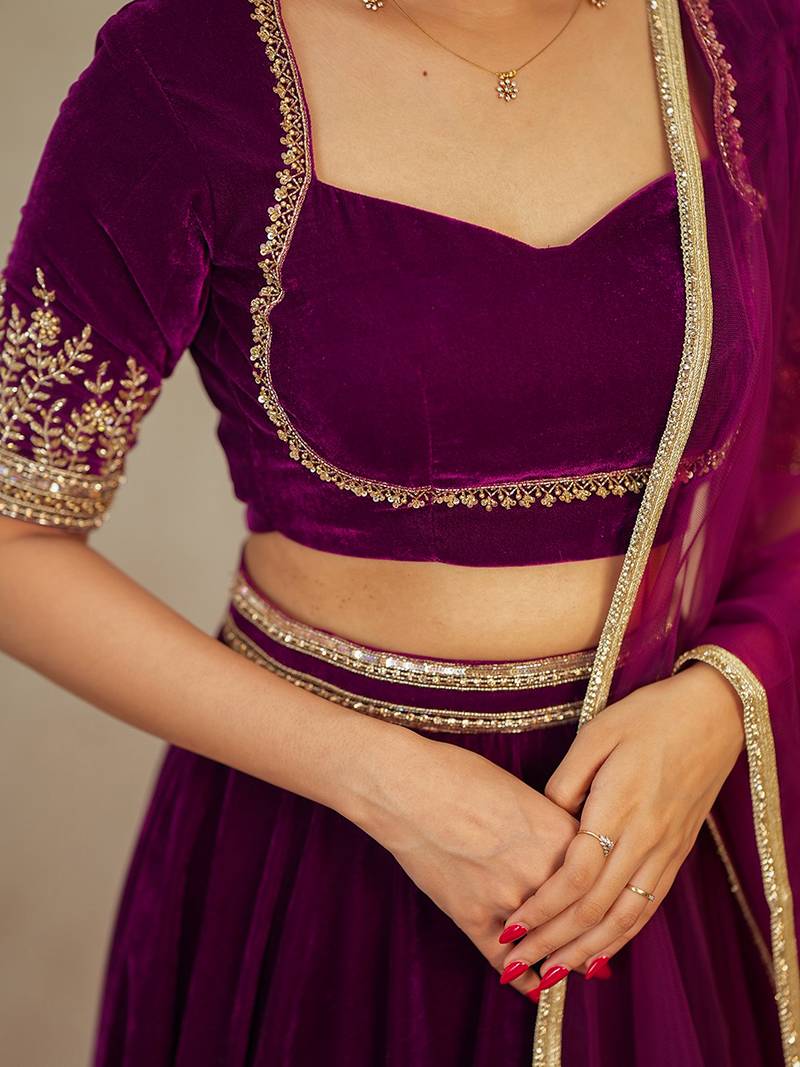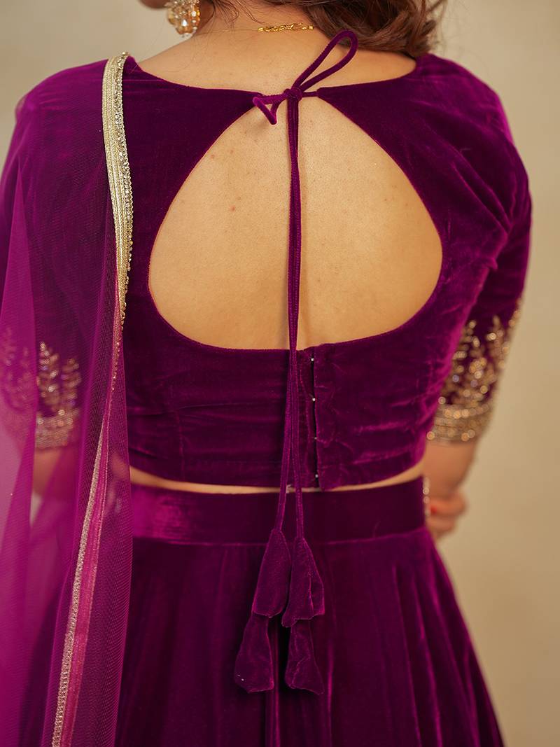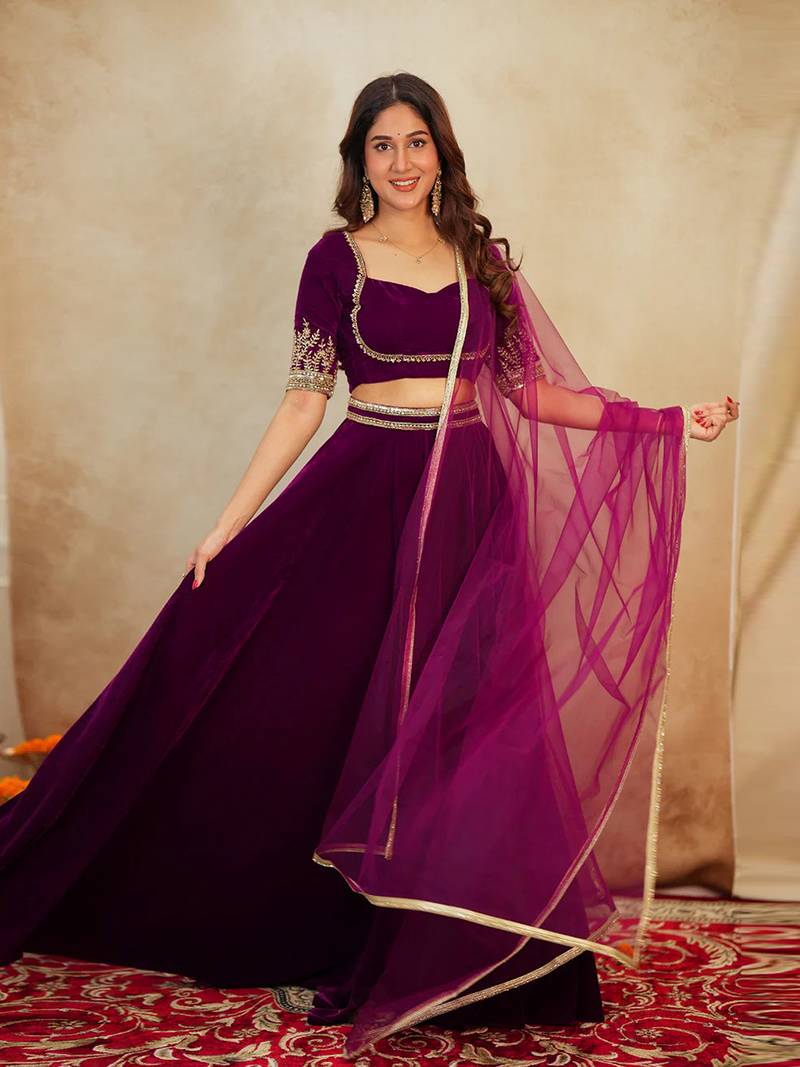 | Product Name | Purple Velvet Embroidery Sequence Work Lehenga Choli Blouse With Dupatta For Women | |