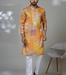 Aesthetic yellow color neck embroidery kurta for men | premium designer men's kurta