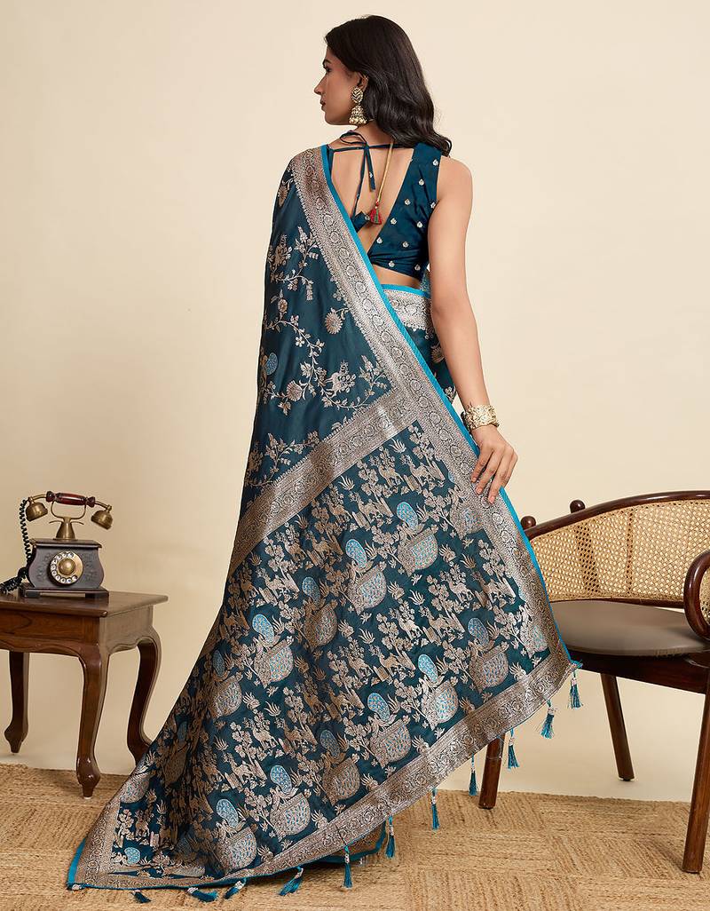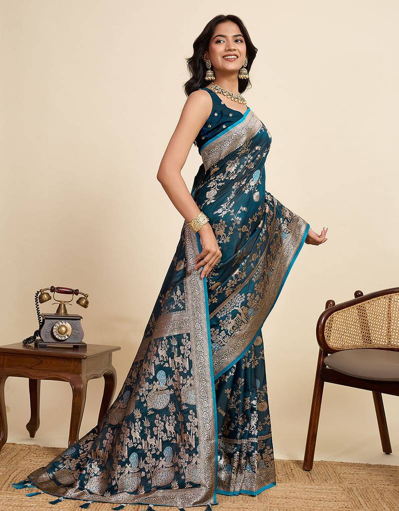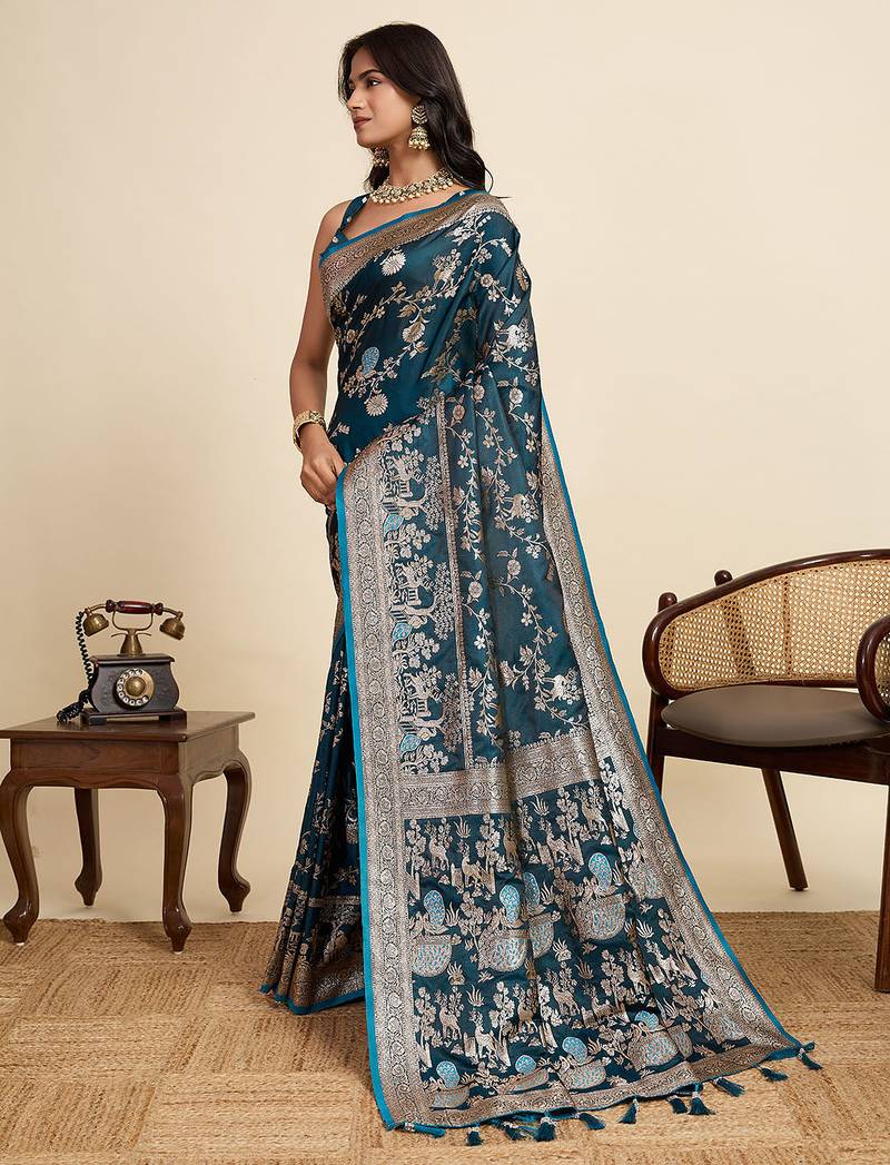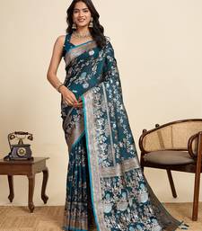 | Product Name | Blue Floral Print Woven Satin Banarasi Saree With Blouse | |