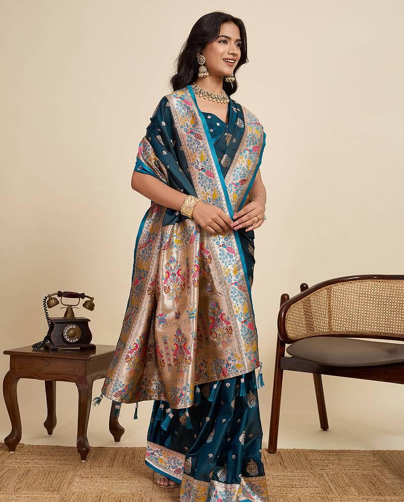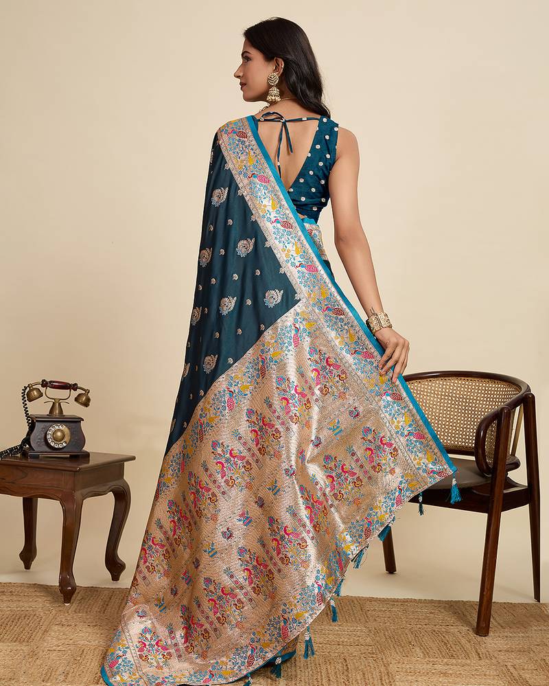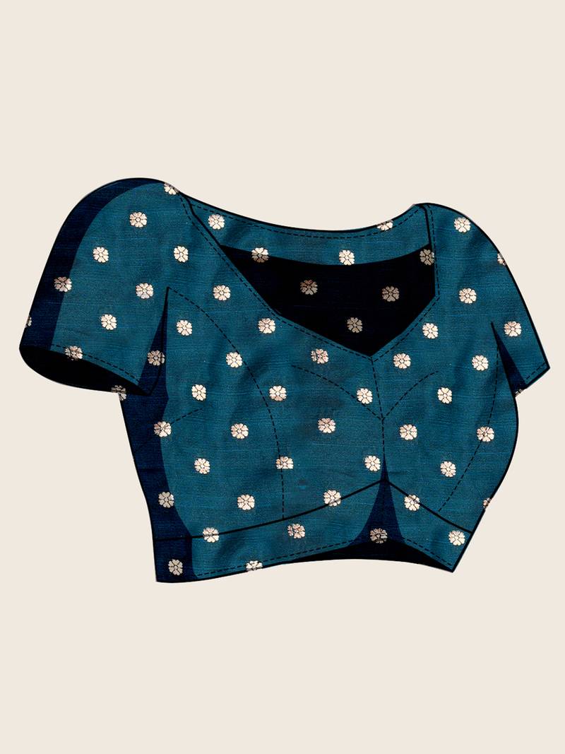| Product Name | Blue Floral Print Woven Satin Banarasi Saree With Blouse | |