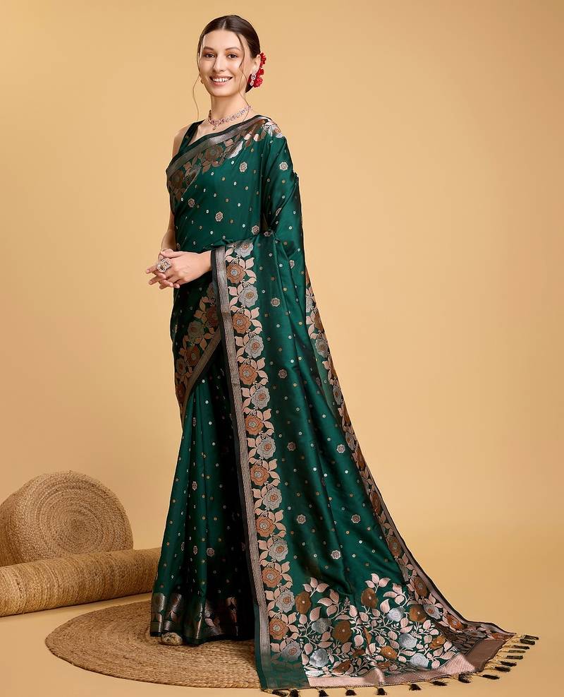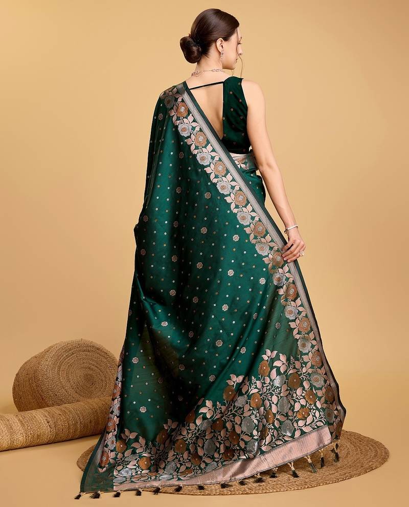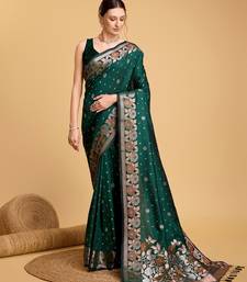 Green woven embellished pure silk banarasi saree with blouse