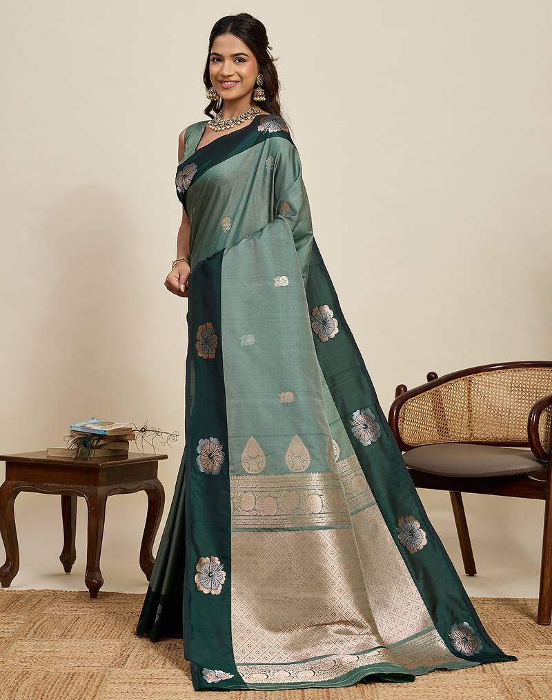Green zari woven soft silk banarasi saree with blouse