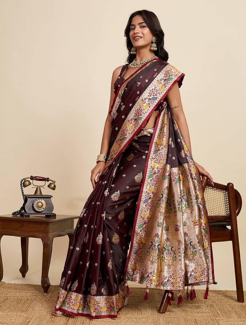 | Product Name | Maroon Floral Print Woven Satin Banarasi Saree With Blouse | |