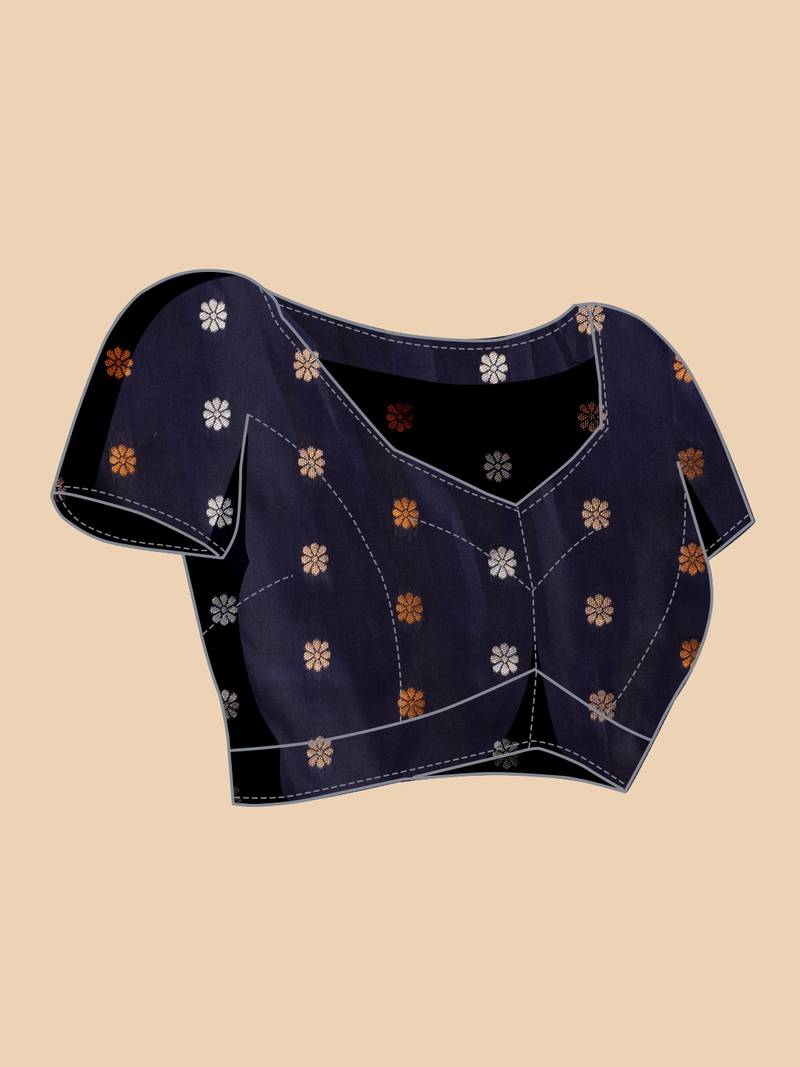 | Product Name | Navy Blue Woven Embellished Pure Silk Banarasi Saree With Blouse | |