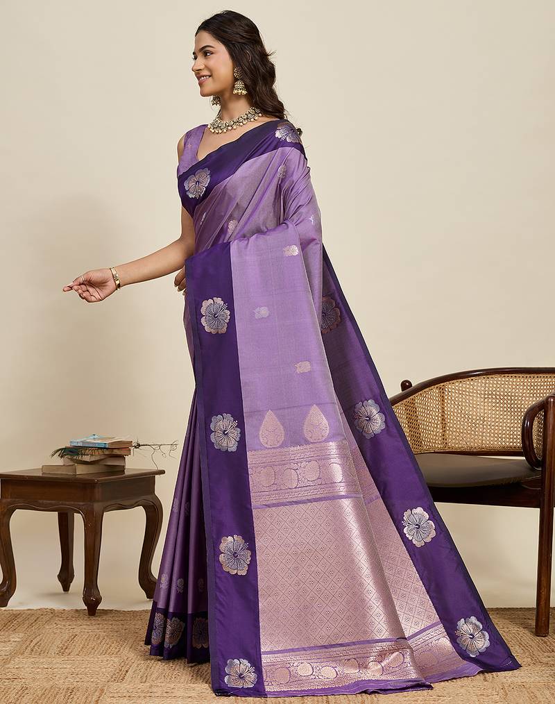 | Product Name | Purple Zari Woven Soft Silk Banarasi Saree With Blouse | |