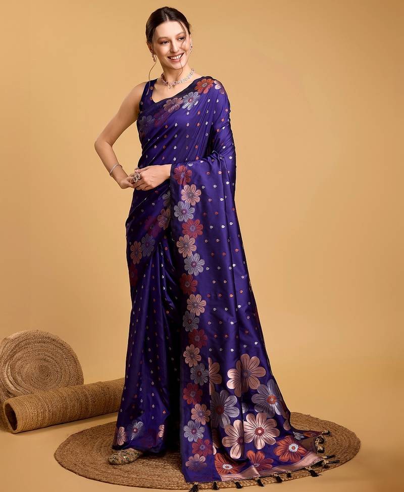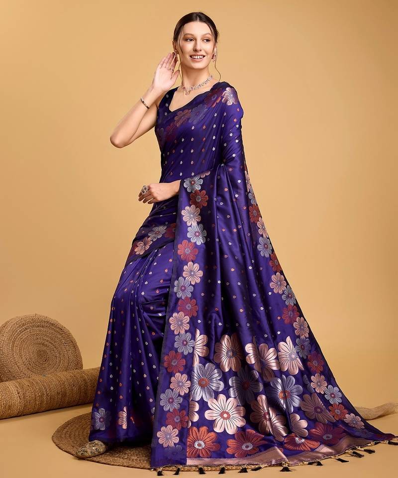Violet woven embellished pure silk banarasi saree with blouse