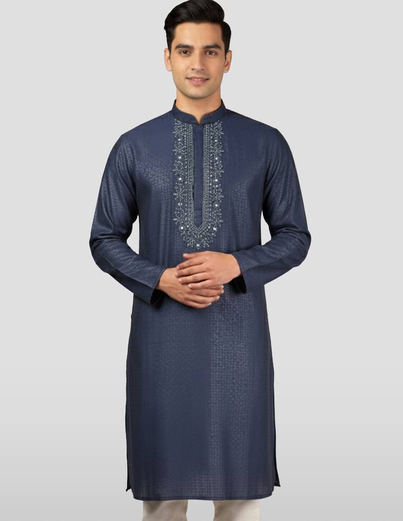 | Product Name | Vastramay Men's Navy Blue Zudio Emboss Silk Kurta Bead Mirror Embroidered Wedding | |