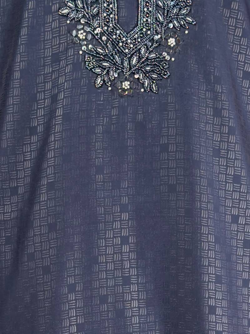 | Product Description | Transform Your Ethnic Wardrobe With Vastramay's Navy Blue Zudio Emboss Silk Kurta Featuring Beautiful Bead And Mirror Embroidery In Floral Motifs With Premium Crepe Lining. |