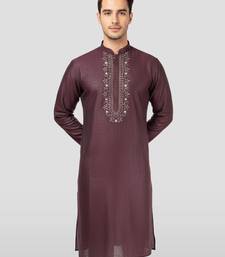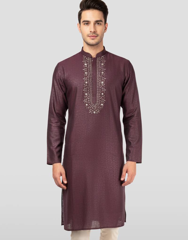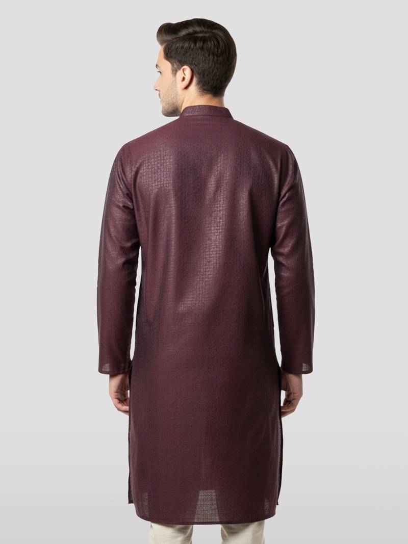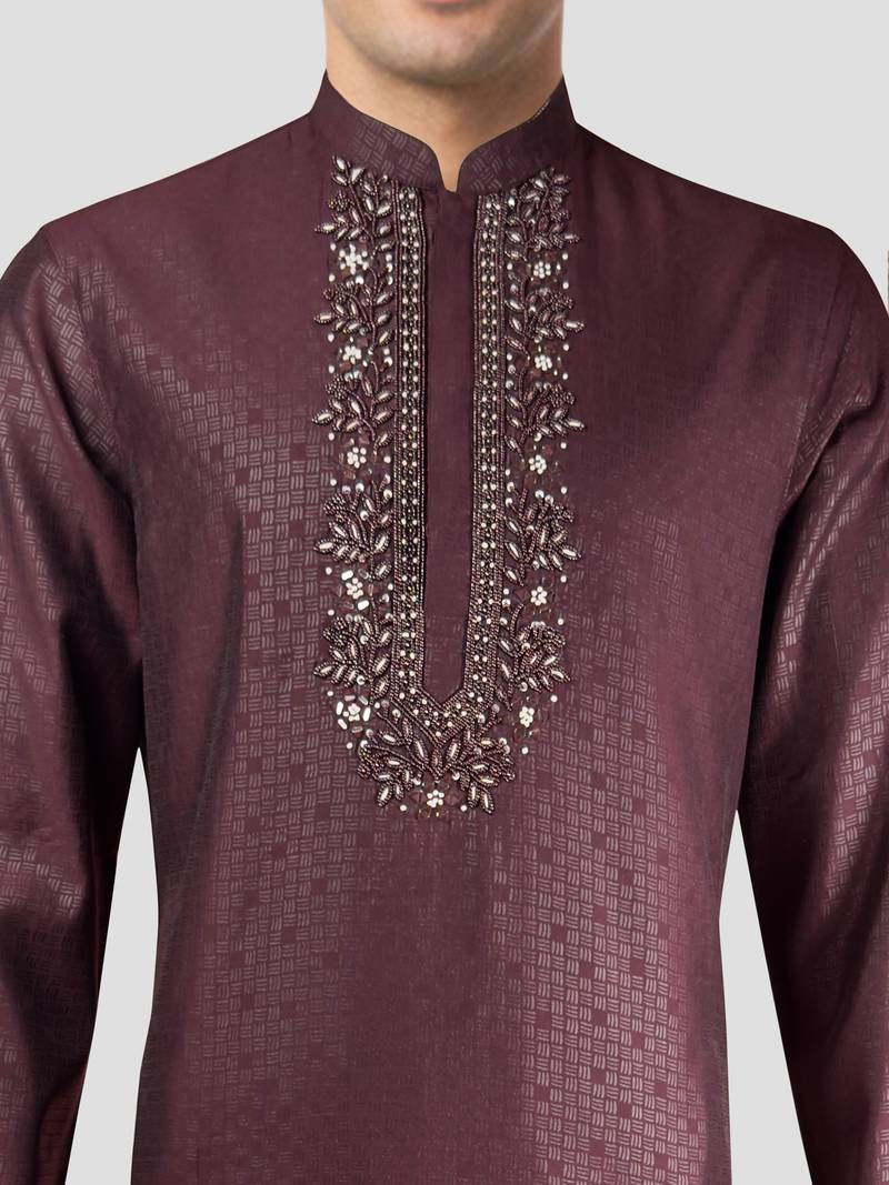 Vastramay men's wine zudio emboss silk kurta - bead mirror embroidered wedding ethnic