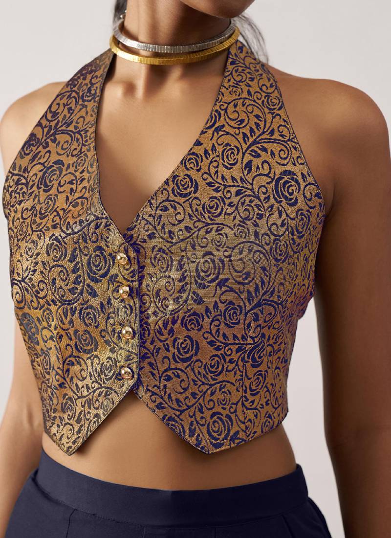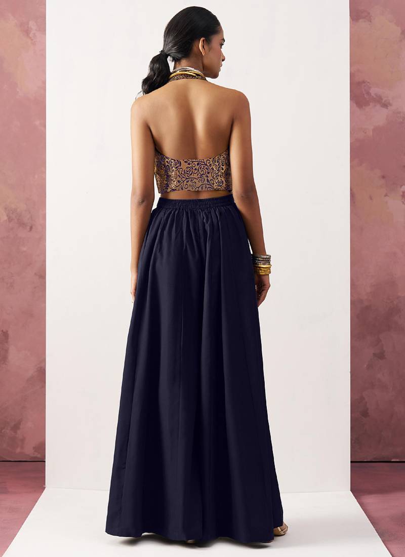 | Product Name | Blue Jacquard Crop Top Style Readymade Lehenga Set | |