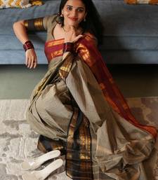 Beige chettinad saree cotton silk ganga jamuna saree with blouse