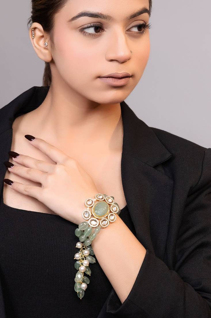 | Product Name | Gold Plated Kundan Green Stones Bracelet | |