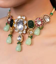 | Product Description | This Gold Plated Kundan Multicolor Stone Choker Necklace Showcases Regal Elegance And Traditional Charm. Crafted With A Radiant Gold Finish And Adorned With Classic Kundan Work And Vibrant Green Stones, It Adds A Rich, Statement Touch. Perfect For Weddings And Festive Occasions, It Offers A Bold, Graceful Look With Timeless Ethnic Appeal.